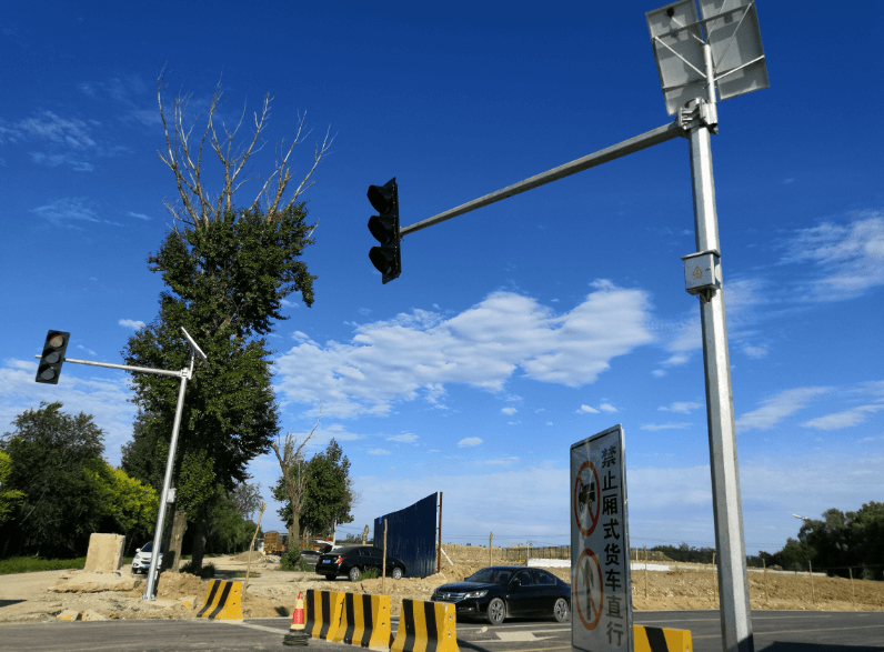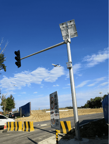 北京順義區首都機場外圍擴建,新修路段安裝23套紅綠燈安防監控桿,由于此路段不便走地下線,故此本次設計全部為太陽能光伏發電,紅綠燈監控桿安裝完成后將為機場周圍居民提供出行便利條件。